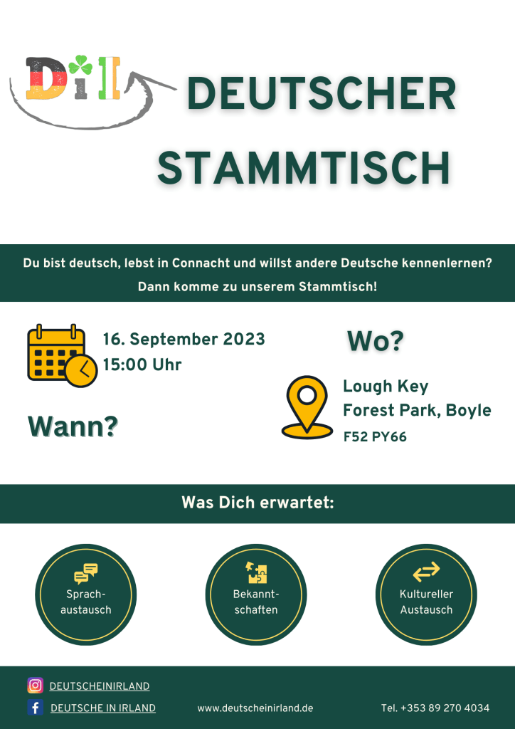 Dann bist du herzlich zu unserem ersten Stammtisch-Treffen am 16. September 2023, 15:00 Uhr in Lough Key Forest Park eingeladen.
